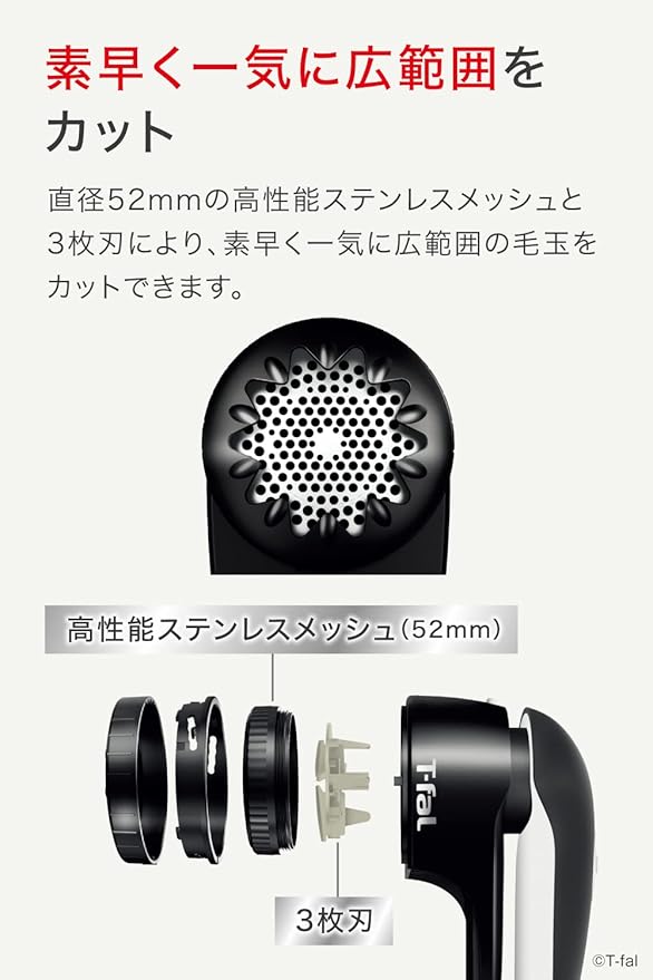 ●高品質ステンレスメッシュ(52mm):素早く一気に広範囲の毛玉をとることができる。