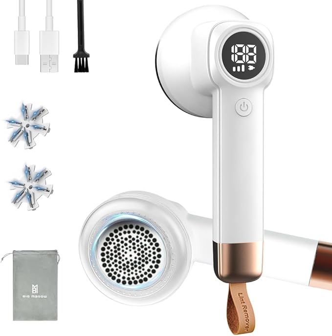 [BIG masow] 毛玉取り 電動 けだまとり 充電式 毛玉取り器 毛玉クリーナー けだま取り器 LEDスクリーン 3段階調整 強力6枚刃 USB充電 旅行 出張 家庭用 替え刃 ホワイト