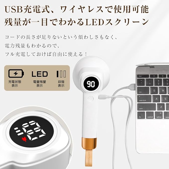 【1200mAh大容量、USB充電式&ワイヤレス使用可能】コードの長さが足りなかったり、環境に優しくないバッテリーなどの心配がありませんか?ワイヤレスで使える充電式毛玉取りをもって、2つの問題を一度に解決しましょう!TYPE-C充電ケーブルも付属しているので、お好きな時悠々に充電して使えます。