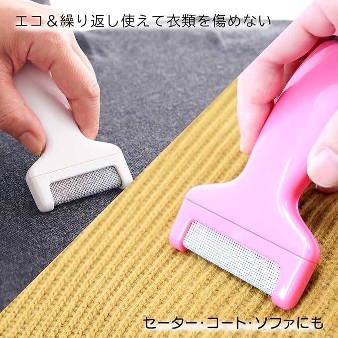 電池もコードも不要。押してなでるだけで毛玉がスッと取れる、エコで便利な毛玉取りです。