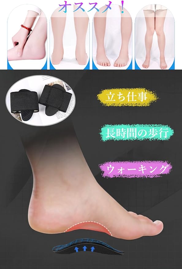 【様々な場合に適用】日常生活に散歩、通勤、通学、旅游、登山等の立ち活動もいいです。土踏まずサポーターは足底を補充して、気軽な歩いている状態を作られます。