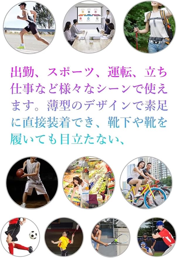 【通気性に優れ】高品質のナイロンで作られた薄型の装着部は汗を吸いやすい、通気性が良く、足に臭い匂いを起こしません。薄型なので、靴を履いて違和感なく歩くことができます。