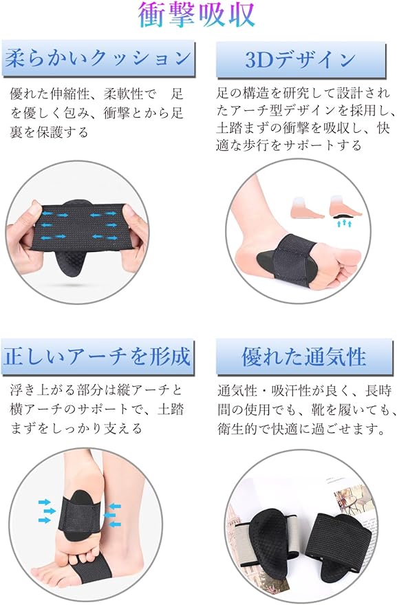 土踏まず 足用アーチサポーター 衝撃吸収 足裏 保護パッド 立ち仕事 ランニング 登山 立ち仕事 スポーツ 男女兼用