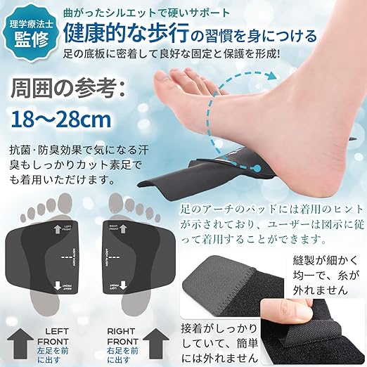 【高品質で薄くて丈夫な素材】足裏 生地の厚みは約1.5mmと薄型なので、そのままいつもの靴を履いてもOKです。伸縮性と柔軟性に優れた高弾性ナイロン素材を使用していますので、快適に足部にフィットし、足底を安定的に固定することができます。その優れた伸縮性により、長時間の装着でも快適さを保ちます。