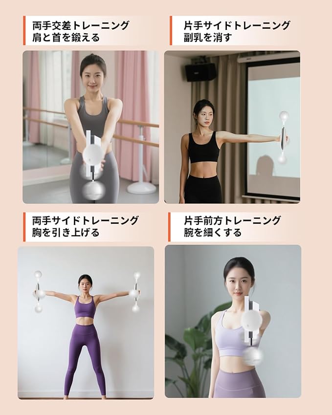 【運動方法は簡単で学びやすい】二の腕ダイエット器具,男女問わず使用できます。操作は非常に簡単で,1日数分の使用でも肩や腕、前腕の筋肉をしっかり刺激できます。毎日2〜3セット、3〜5分の使用をお勧めします。もし副乳を改善したい女性は、週に3〜4回、毎回3〜5分使用することをお勧めします。同時に持続的なストレッチや食事管理を組み合わせることで、美しいラインと理想的な体型を効率的に手に入れることができます。
