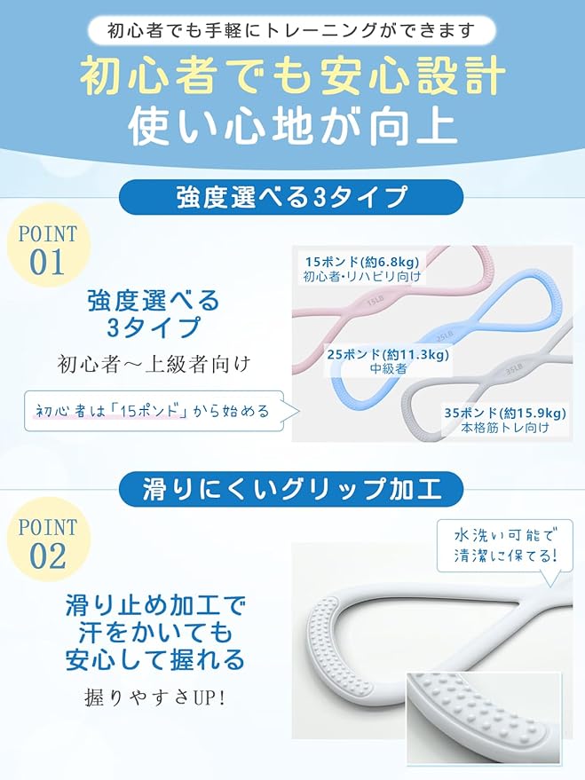 ✅【3段階の強度でレベルに合わせてトレーニング】初心者向け(15LB):リハビリ・軽めのストレッチに最適。中級者向け(25LB):筋力UP・引き締めトレーニング向け。上級者向け(35LB):本格的な筋トレや負荷をかけたい方に