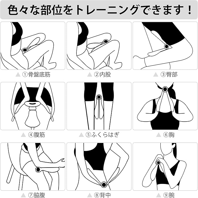 【鍛えられる部位が多い】骨盤底筋だけではなく、内股、臀部、腹筋、ふくらはぎ、胸、脇腹、背中、腕なども鍛えることができ、美脚を実現だけではなく、各部位の筋トレ・ダイエットにもオススメです。トレーニング効果が飛躍的に強化されました!
