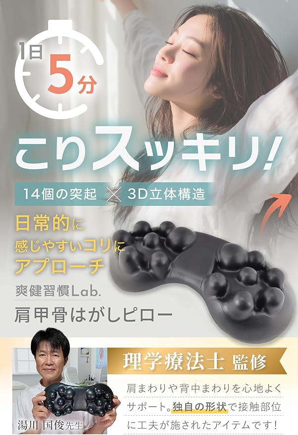肩甲骨はがしピロー 【1日5分寝るだけW効果】 肩 首回り リラックス【現役理学療法士監修】肩甲骨ほぐしサポート Soken習慣Lab.