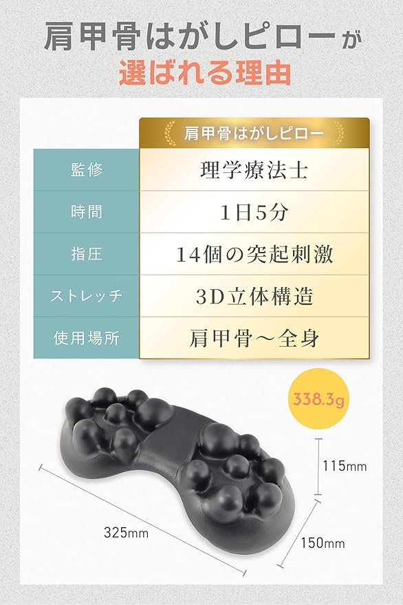 【理学療法士監修の安心設計】 現役理学療法士が企画・開発。効果的に肩甲骨ケアできる設計です。