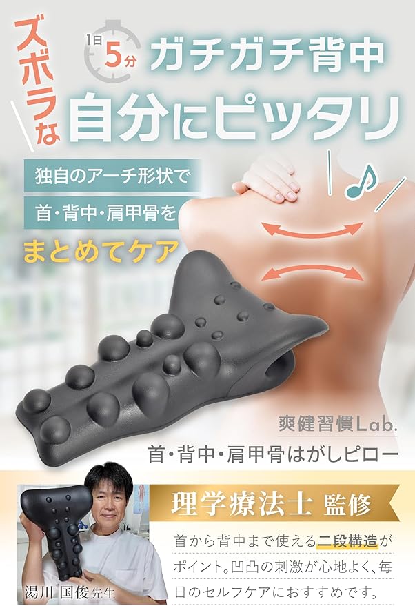 首 背中 肩甲骨はがしピロー 【1日5分寝るだけW効果】 【現役理学療法士監修】 肩まわりケア 首ストレッチサポート 背中リラックス Soken習慣Lab.