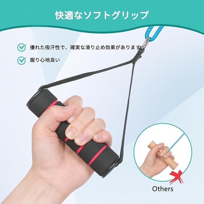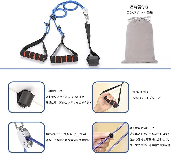 【特別なドアアンカーとグリップ】柔らかいスポンジでできているドアアンカーはドアの隙間にしっかりと嵌まり、ドア表面への傷を防ぎます。使用は簡単です。グリップは柔らかい発泡スポンジで填充されており、超快適な握り心地を提供します