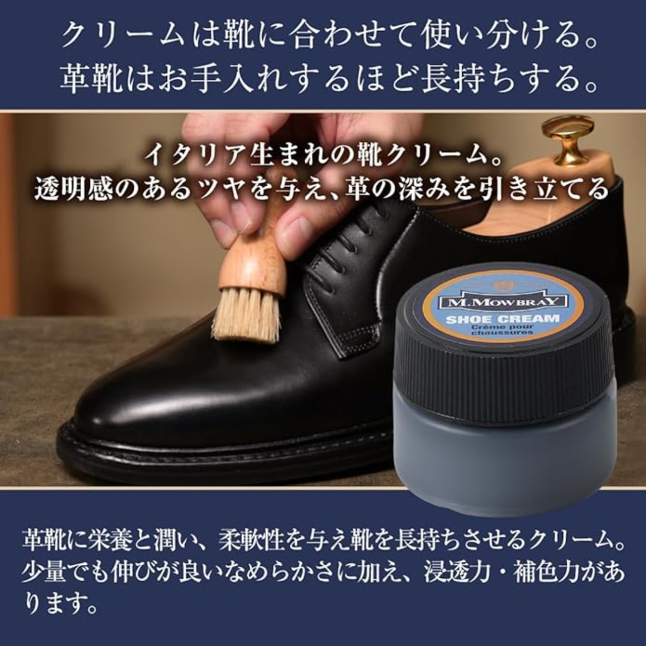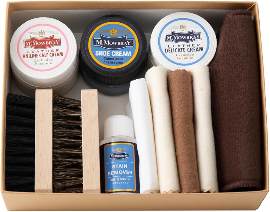 靴磨きセットです。クリームを3種類お試しサイズで組み込んでいるので、お好きなクリームを見つけてください。