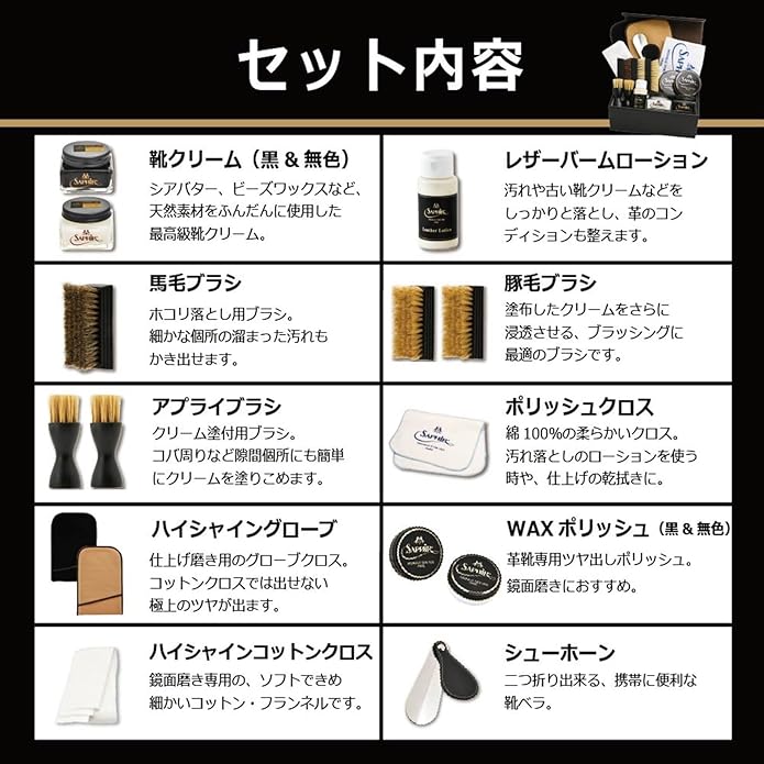 [サフィール] 靴クリームの最高峰 豪華ボックス 靴磨きセット 鏡面仕上げ シューケア エグゼクティブ DX(PA-NRIZZ) クレム1925 革靴 手入れ セット メンテナンス ワックス クリーナー ブラシ 馬毛 豚毛 クロス | etshop