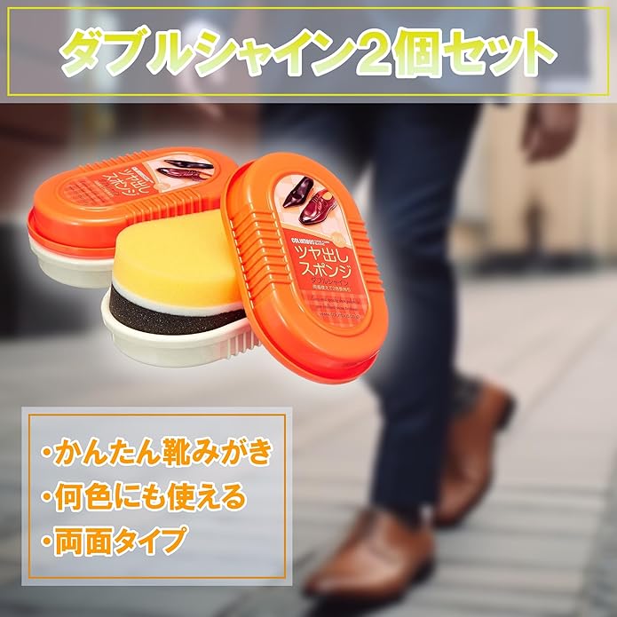 [コロンブス] 両面使えて簡単・便利な靴磨きスポンジ ダブルシャイン2個パック