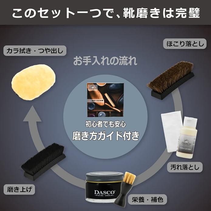 [Dasco] [ダスコ] 英国伝統の品質 靴磨きセット スペシャルグローブセット シングルDX(PA-DNN) 革靴 手入れ セット メンテナンス 靴クリーム 馬毛 豚毛 ブラシ クロス 着色 補色 キズ隠し