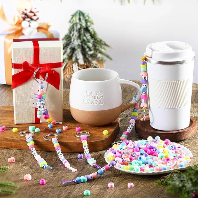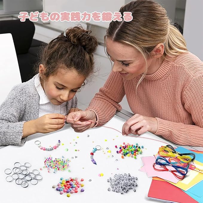 1.【DIYキーホルダー手作りキット】当店の285点入りDIYキーホルダーキットは、美しい装飾品を作るための創造的なニーズに応える多彩な素材を揃えています。様々なアルファベットビーズやカラフルなビーズを使って、キーホルダー、ブレスレット、ネックレスを作れます。例えば「love」「graduation」「dad」といった言葉や、自分へのメッセージ、お祭り名など、意味のある言葉を表現できます。 2.【充実のパッケージ内容】本ビーズキーホルダーキットには、金属製キーリング6個、紐4本、アルファベットビーズ150個、カラフルビーズ100個、ハート型ビーズ25個が同梱。多様なニーズに対応し、キーホルダーやアクセサリー制作において創造性と芸術的自由を発揮し、より面白いアイデアを生み出せます。 3.【簡単に作れる】ビーズは簡単に作れて糸に通せるので、お好みの単語をつなげて完成させられます。当社の文字ビーズは自由に回転させ、様々な面白い単語に形作れます。DIY活動に参加するプロジェクトに活用でき、分類ゲームやビーズ作業を通じて知覚運動能力を向上させます。人々が共有する教育的体験を提供する理想的な機会となります。 4.【高品質素材】当キーホルダーキットは創作ニーズに応える厳選素材を採用。金属製キーリングは頑丈で耐久性に優れ、作品の長寿命を保証。付属プラスチックビーズは丈夫で魅力的、作品に鮮やかな色彩と立体感を添えます。 5.【多機能な装飾用途】単なるキーホルダーだけでなく、当DIYキットで可愛いハンドバッグやリュックのチャーム、クリスマスパーティーの装飾品、贈り物用アクセサリーも制作可能。友人や家族と共有し、クリスマスに集まって手芸を楽しむことで、温かな休日の雰囲気を演出できます。