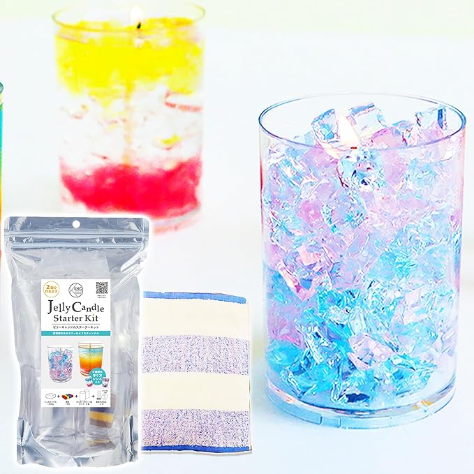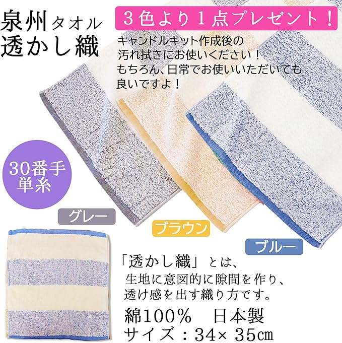 手作り ゼリーキャンドルスターターキット 1個(2個制作可能)+ 泉州タオル 透かし織1本(34 35cm) 作り方 レシピ付き 初心者 夏休み 自由工作 スターター キャンドル 手作りキャンドルキット キャンドル ジェルワックス おうち時間 DIY ローソク ろうそく