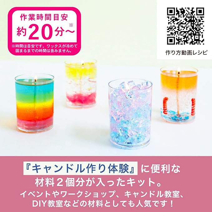 透明感のあるゼリーのようなキャンドルが作れるキャンドルキットです。クリアで丈夫なポリカーボネート製カップにジェルワックスを注いだり、 パーツを入れたり、アイデア次第でいろいろアレンジを楽しめます。 一つのキットで2個作れます。