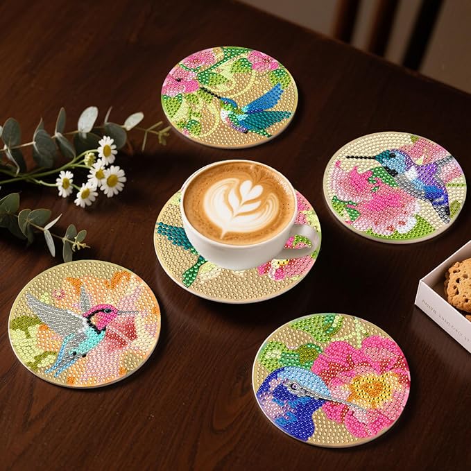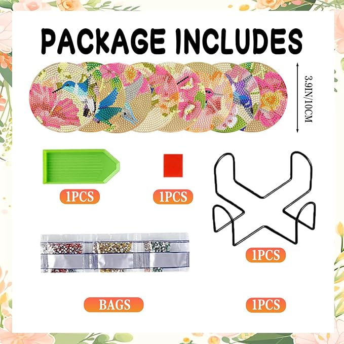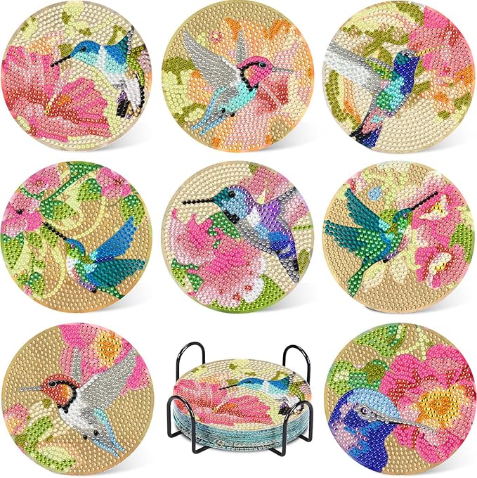 ダイヤモンドアート コースター キット 8枚セットDIY ベース付き 5D モザイクアート ダイヤモンド塗装 初心者向け 飾り 手作り 手芸キット(BD543)