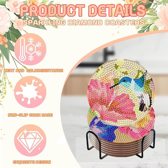 【美的で実用的】 完成したダイヤモンドペインティングコースターは、鮮やかで魅力的な色の慎重にデザインされたパターンを特徴としています。使用しないときはアートワークのように飾ることができ、実用的なコースターとしてだけでなく、家の装飾を引き立てる美しい装飾にもなります。