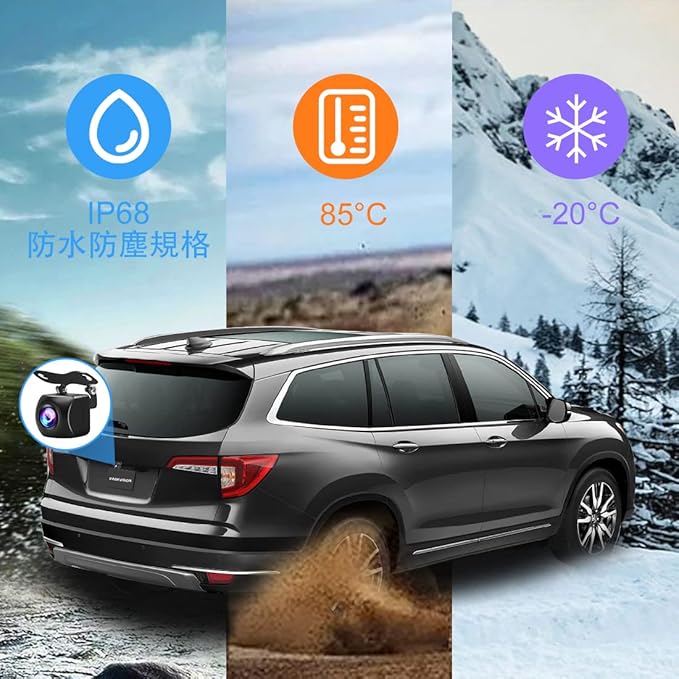 長時間通電可能:完全に密閉された防水接着剤を充填しているため、雨の日は水、霧をカメラに浸入する心配が必要あります。すべての製品は、工場出荷前に8〜12時間の耐衝撃性、高圧防水防霧などの試験に合格し、製品の耐久性が保障されている。高品質のセンサー、カメラケース、ステーなどの素材を採用していて、長時間の通電にも対応しているので、フロントカメラとしても安心です。