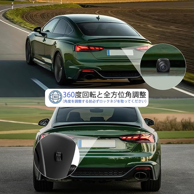 リアカメラ フロント/バック カメラ兼用 360度回転調整可能 100万画素 AHDモニター対応 125度広角 防水 超強暗視機能 カメラ AHDとCVBSの信号切り替え ガイドライン 有り 無し 正像 鏡像 切り替え (R10-3ブラック)