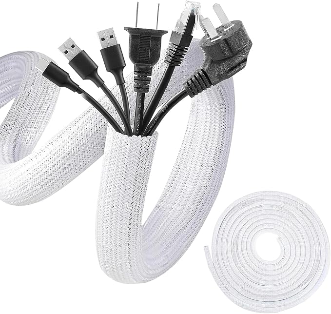 ケーブル収納スリーブ 配線カバー 編組ケーブルスリーブ 全長約3M 内径約13mm コードカバー 線隠し 配線チューブ 配線保護カバー ケーブルカバー ペット噛み防止 ケーブル 纏める チューブ PET素材 DIY切断可能 絶縁 耐熱 防塵 耐摩耗性 テレビ コンピューター用 家庭用 オフィス用 (ホワイト)