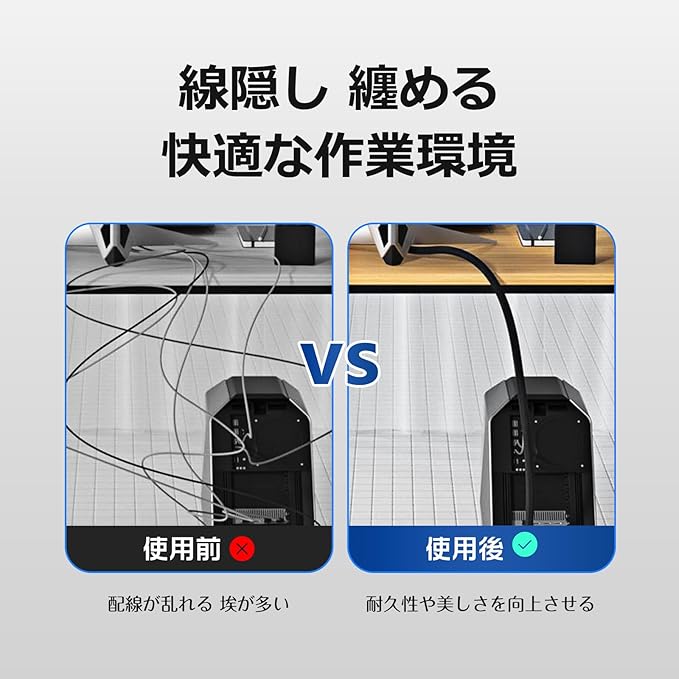 【様々な場所で大活躍】家庭及びオフィスの様々な場所で大活躍します。配線が乱れることがよくあります。ケーブル収納スリーブを使用することで、コンピュータケーブル、電源ケーブル、イヤホンケーブルなどをまとめ、スッキリとした印象を与えることができます。埃の多い環境での使用においては、ケーブルの清潔な状態を維持することができ、掃除にも手間がかかりません。快適な作業環境を作り出し、作業効率を向上させることができます。