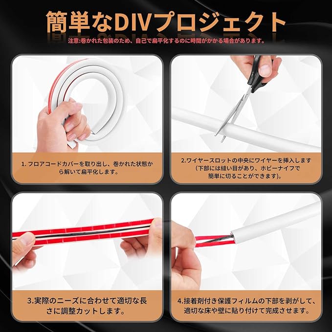 【効果検出】配線カバー コード隠し パソコンのケーブル、 家電のケーブル、コンセントのケーブルなど、 さまざまな有線ケーブルを完璧に隠すとかできます。 環境を美しくするだけでなく、電線も保護し、電力漏れの危険性を防止しています。