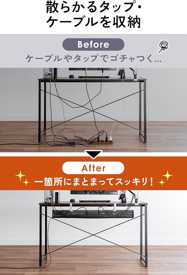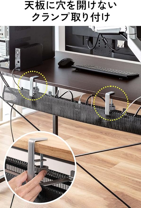 【簡単取り付けの 配線ラック 】クランプ式 なので工具不要で デスク に簡単に取り付け・取り外しができます。
