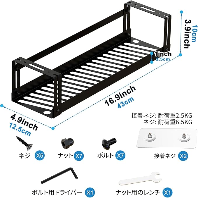 【商品詳細】サイズ:長さ43cm 幅12.5cm 高さ10cm。材質:上質炭素鋼。長期間の使用に耐えます。コード収納パッケージ内容:大型ケーブルトレイ 1、ボルト 7、ナット 7、接着ネジ 2、ネジ 5、ナットスパナ 1、ボルトドライバー 1、日本語取扱説明書 1。