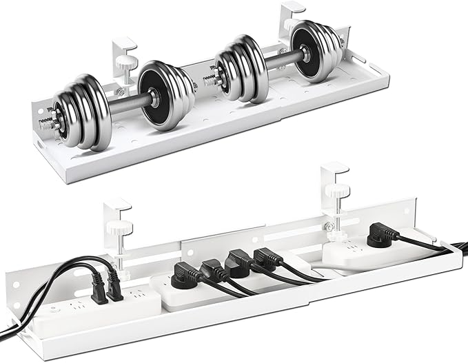 GOENDR ケーブルトレー デスク下伸縮式 ケーブルラック 配線隠し ルーター 収納 ケーブルトレークランプデスク周り収納 メタル製 内向き 外向き両対応【穴あけ不要 取り付け簡単】耐荷重20kg 幅43-68cm 机厚0.2-5cm設置可能 ホワイト