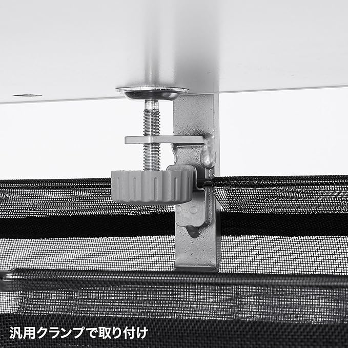 天板厚さが10~40mmのデスクに汎用クランプで締め付けて取り付けます。