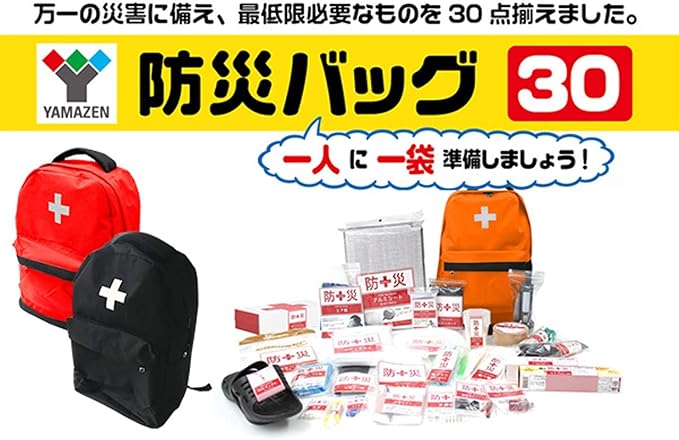 山善(YAMAZEN) 防災リュック 30点 セット 【防災士監修】 一次避難用 給水バッグ 携帯用トイレ 大容量 ブラック YBG-30(BK)