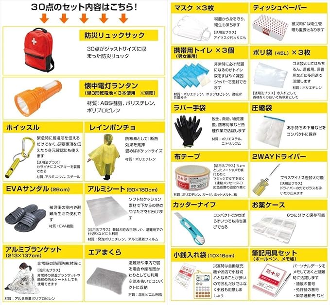 ●災害時に必要なものをまとめた避難リュックセット