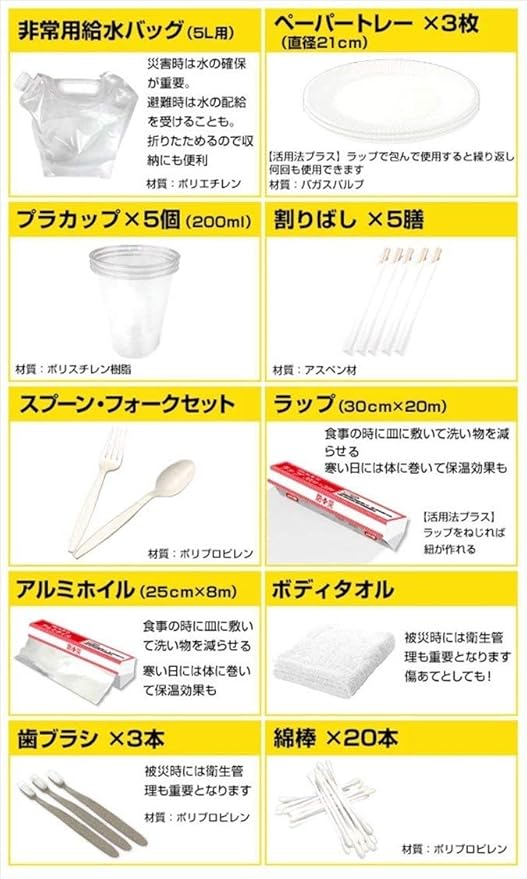 ●消耗品を中心に家族が1つずつ重複して持っていても困らない防災アイテムを凝縮