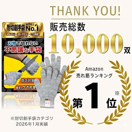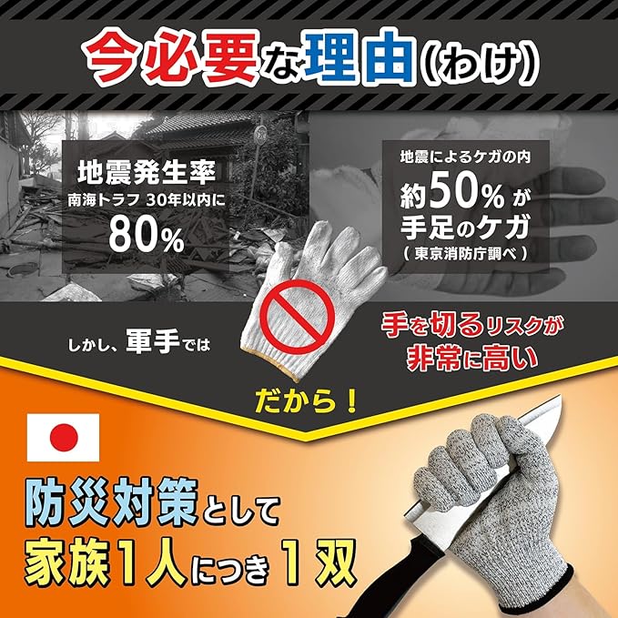 [WARAIGAO] 防刃手袋 耐切創手袋 防災グッズ 軍手 防災用品 手袋 便利な輪っか付き 【現役消防士が監修】