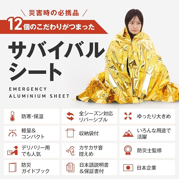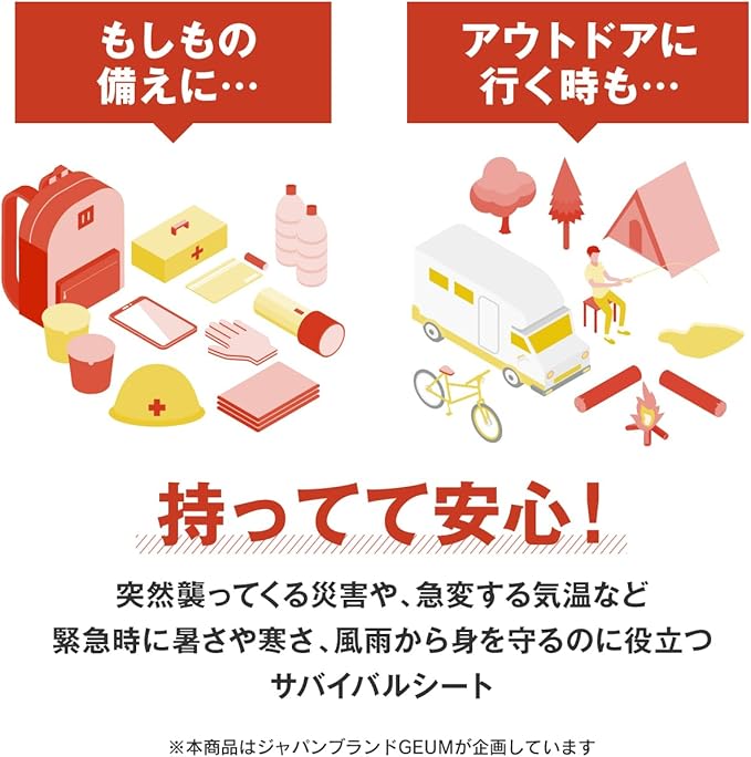 GEUM アルミシート サバイバルシート アルミブランケット 防災グッズ 大きいサイズ 【防災士監修 防災ガイドブック付】 (5)