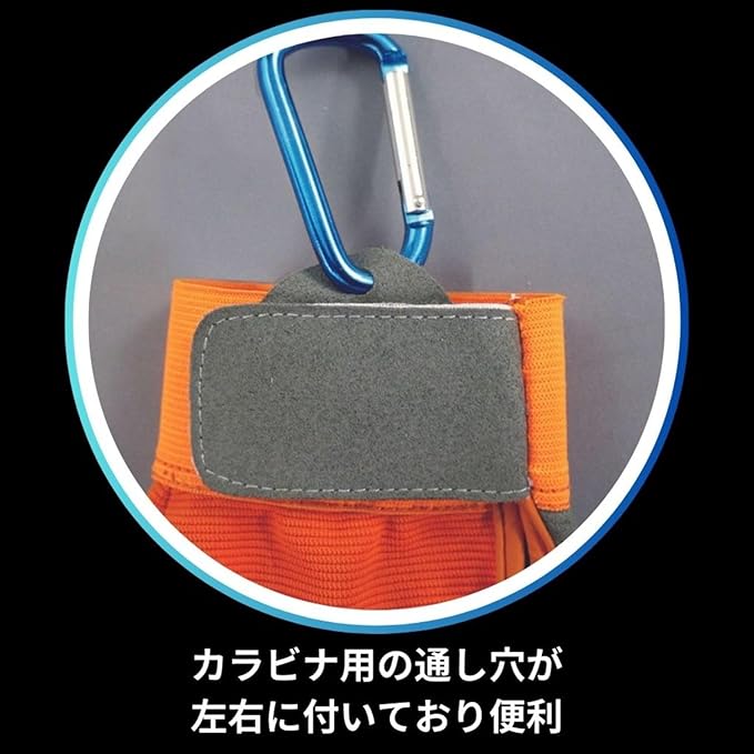カラビナ用の通し穴もついており便利にお使いいただけます。(カラビナは付属しません)