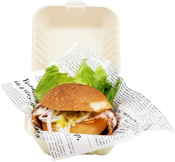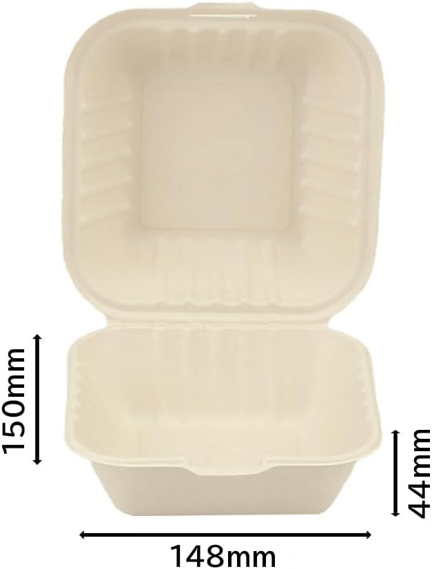 ECO&BASIC バーガーボックス 使い捨て 50枚入 ランチボックス 使い捨て レンジ対応 テイクアウト バガス 丈夫で染みにくい 環境にやさしい 植物由来 業務用 C-ECO-HM-022