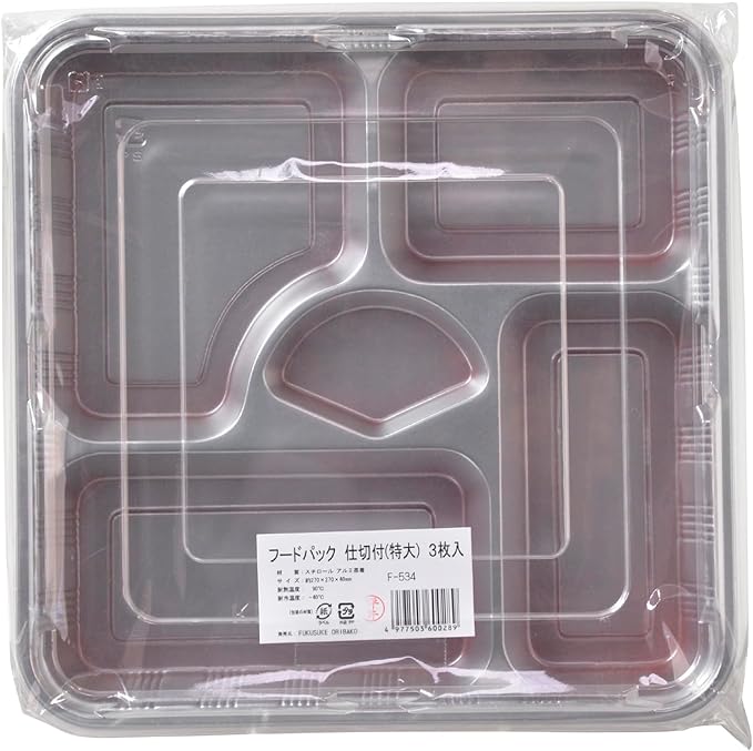 福助木工 フードパック 仕切付 3枚 シルバー 朱 縦27 横27 高さ4cm 日本製 業務用 テイクアウト 容器 弁当箱 使い捨て F-534