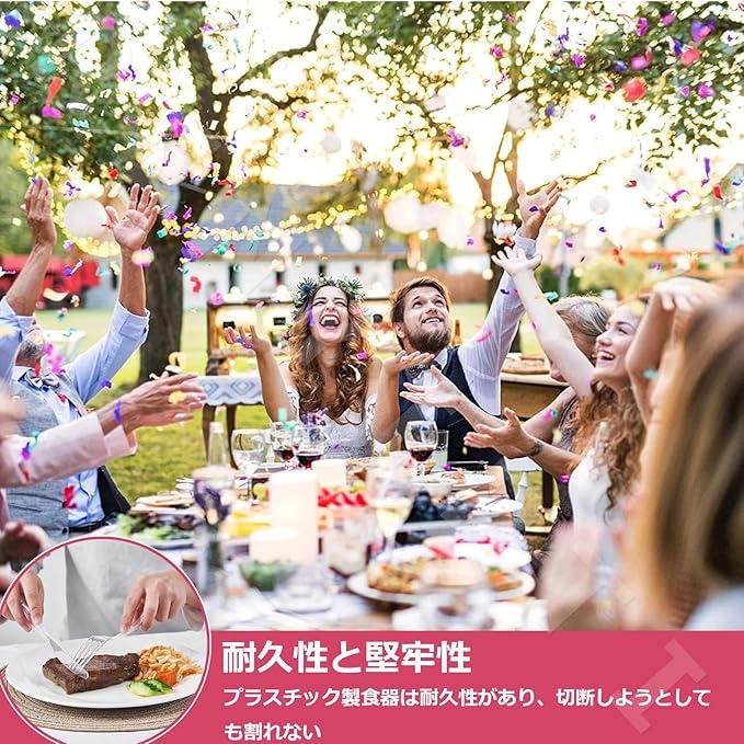 【パーティー用のプラスチック製カトラリー】通常のランチ、お子様のお弁当箱、ピクニック、旅行やキャンプなど、日常の使用にも簡単に組み込むことができます。