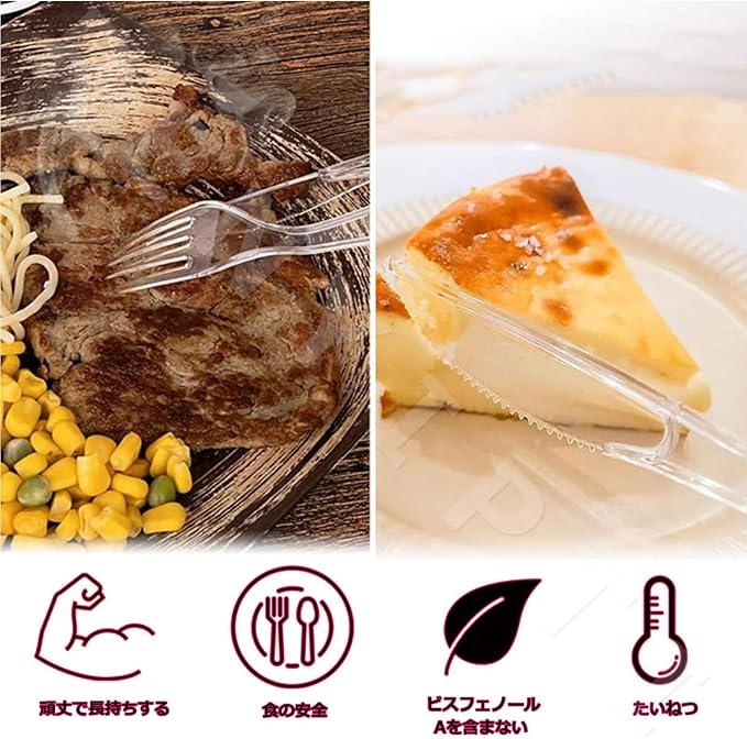 【耐久性と安全性】透明プラスチックナイフとプラスチックフォークは高品質のPPプラスチックで作られており、長寿命です。