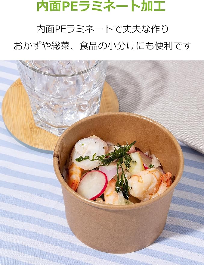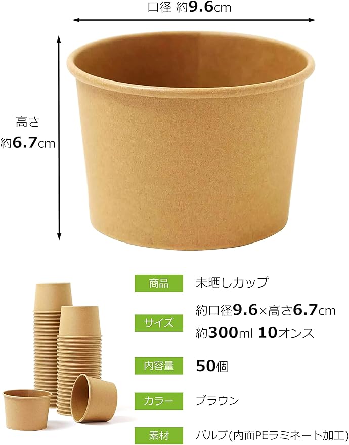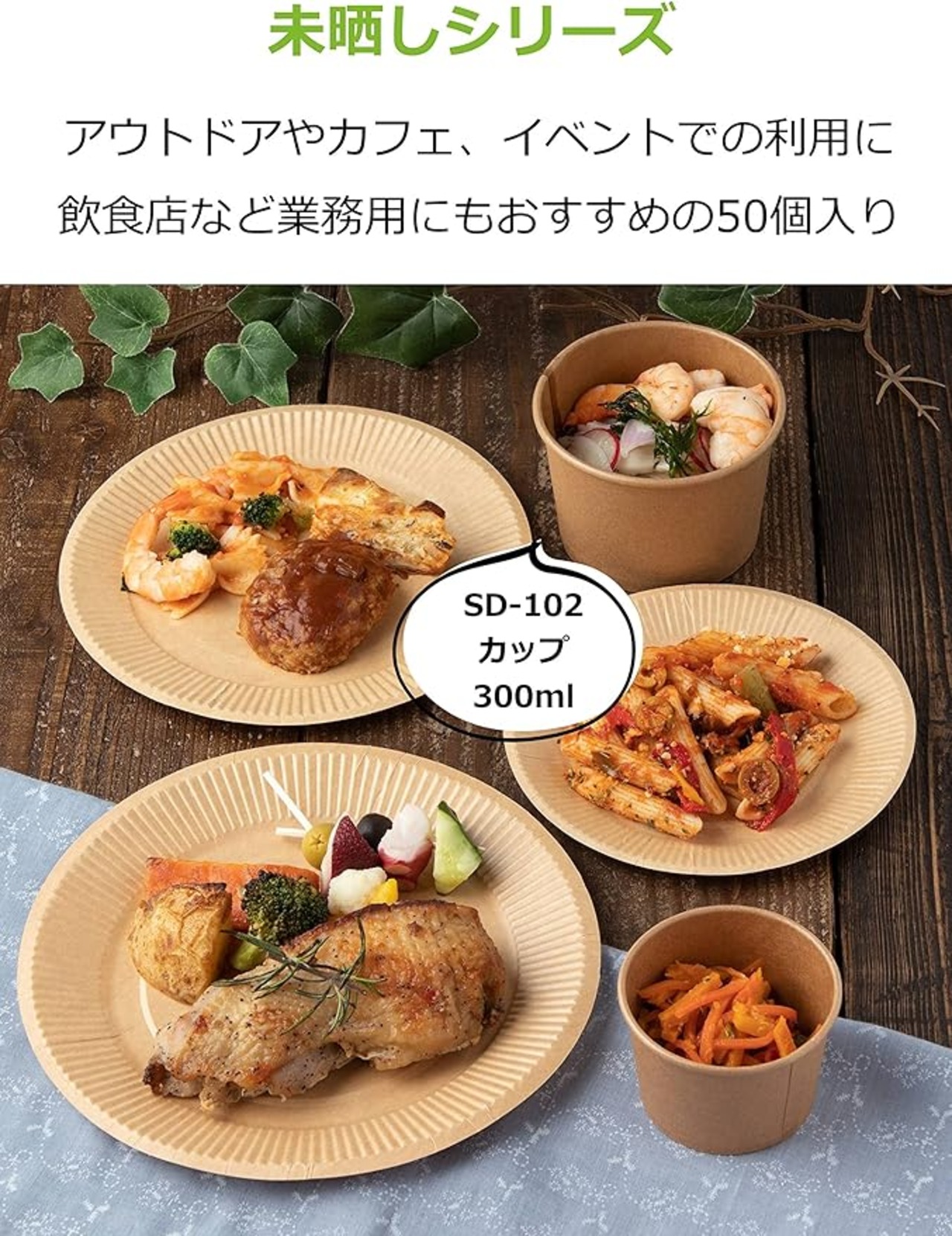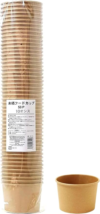 ストリックスデザイン 使い捨て容器 フードカップ 業務用 50個 300ml 10オンス 未晒し ブラウン 水や油に強い 内側ラミネート加工 使い捨てカップ カフェ アウトドア お菓子作り SD-102