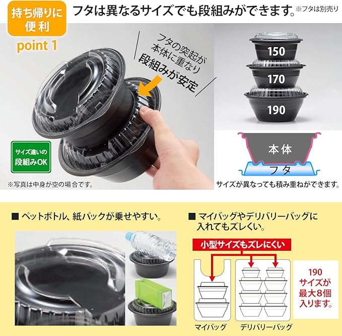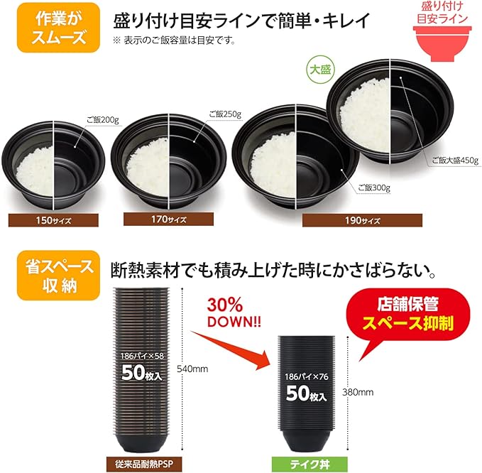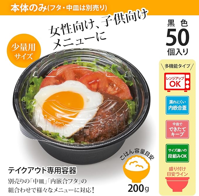 リスパック(Risupack) 使い捨て 容器 テイク丼 150 本体 黒 50個入 日本製 RHDT741