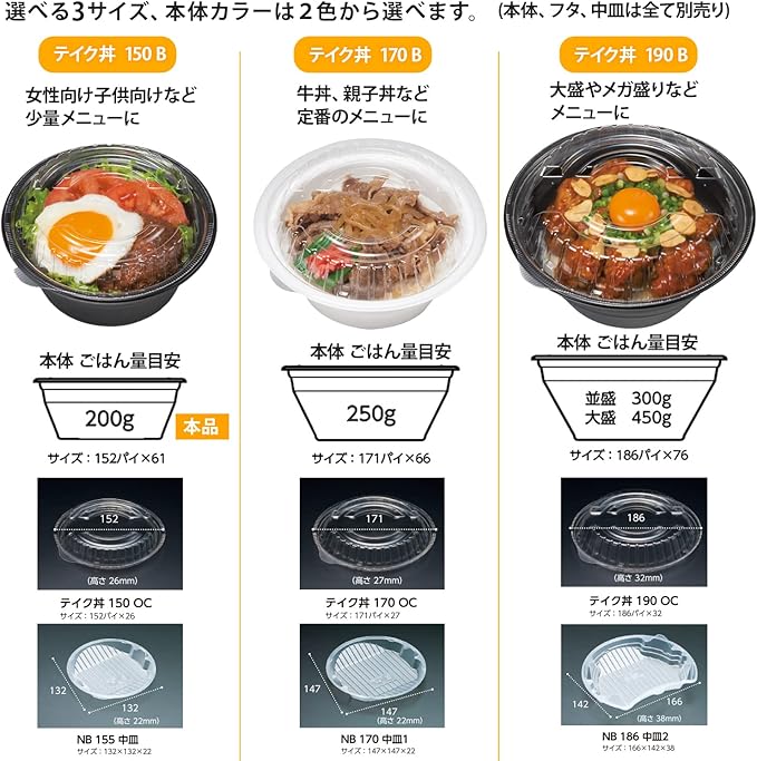 親子丼やかつ丼などの料理を別売りの中皿でセパレートすることで、できたてをキープし、デリバリーにも最適