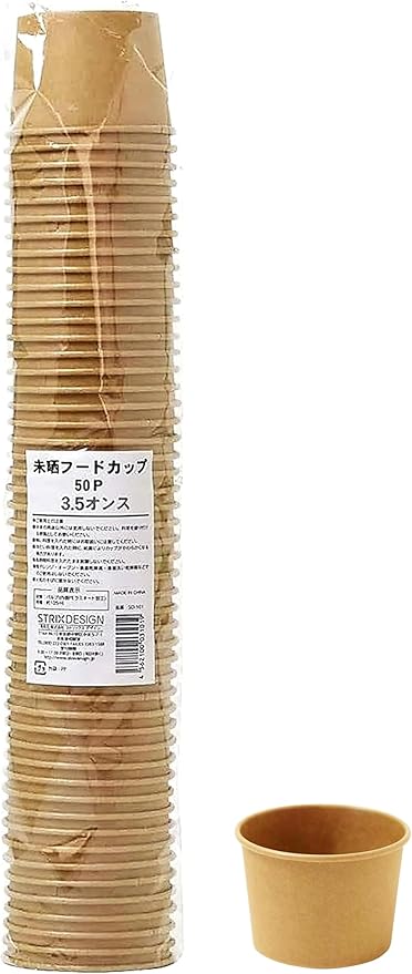 ストリックスデザイン 使い捨て容器 フードカップ 業務用 50個 105ml 3.5オンス 未晒し ブラウン 水や油に強い 内側ラミネート加工 使い捨てカップ カフェ アウトドア お菓子作り SD-101