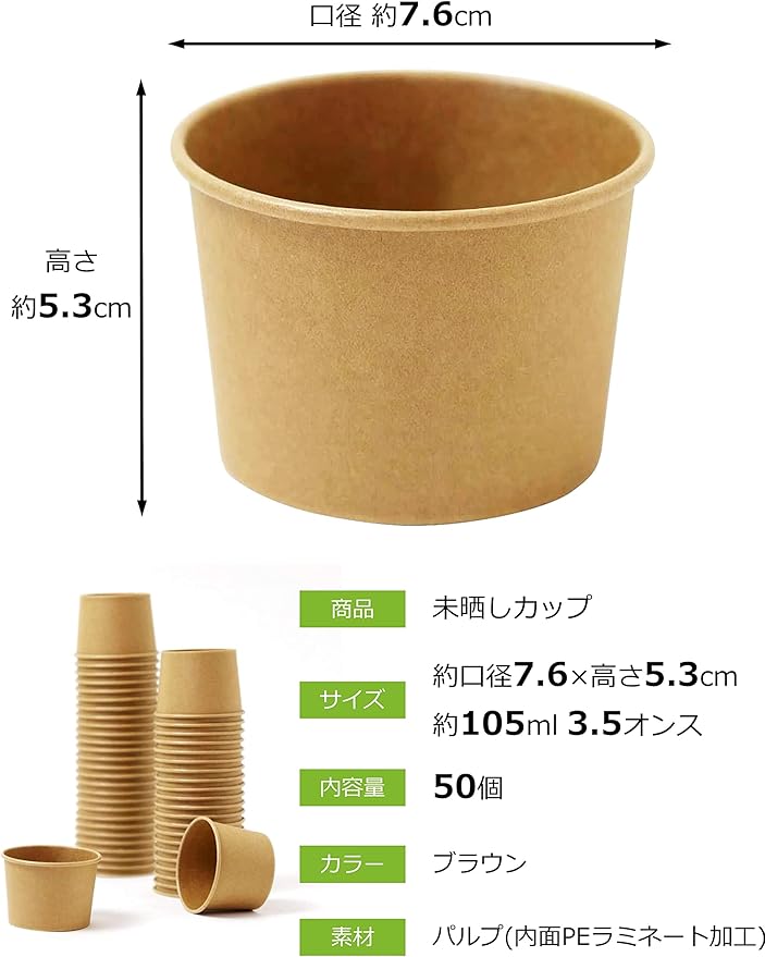 【 特徴 】自然な風合いの 未晒し の フードカップ 。50個入りで業務用にもおすすめ。