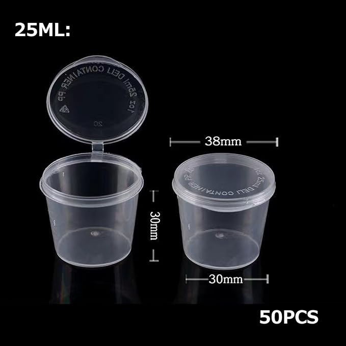 ✅ヒンジ蓋つきカップ:25ml:38*30*30mm50個入り、100ml:65*54*40mm50個入り(詳細は画像をご覧ください)
