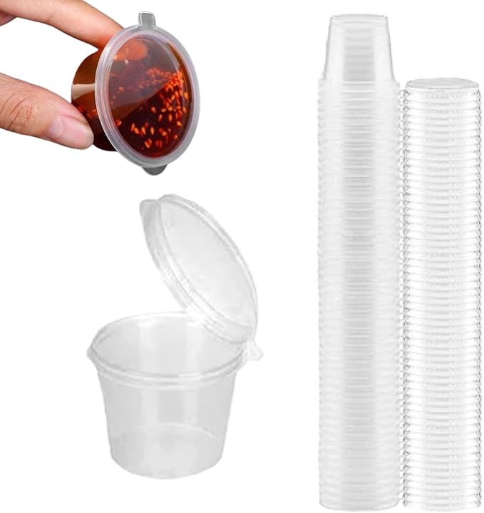 ✅ヒンジ蓋つきカップ:25ml:38*30*30mm50個入り、100ml:65*54*40mm50個入り(詳細は画像をご覧ください)✅ヒンジ蓋付きなので、本体と蓋を別々に管理する必要がなく、蓋を閉じる作業が簡単です。 また、蓋側につまみがあるため、開封が簡単です。(蓋はカチッと音がするまで一周ぐるりと閉めてください) もしも液だれする場合は蓋がきちんと閉まってない時ですので必ず周り全て閉まっているか確認してお使いください。✅耐久性・耐熱性に優れたポリプロピレン素材で、衝撃に強く、カチッと閉まるハードタイプのはめる蓋なので、傾けても中の液体がこぼれず、汁漏れしないのが最大の特徴です。(動画をご覧ください)✅ポリプロピレン素材のため高い耐久性 耐熱性で、衝撃にも強く、冷凍庫対応、 電子レンジ対応です。 ケチャップ ドレッシング マヨネーズ ソース 液体調味料 たれ 薬味等のテイクアウト容器として、また茶葉やオイルの販売容器 試供品容器やスイーツの持ち帰り用ソース入れとしても便利です。 それ以外にも 農業用 水産用 園芸用 手芸用の小物やビーズ入れ パーツ入れ塗装の色調合保存容器として、あらゆるものの小分けや保管に幅広くお使いいただけます。✅洗って使えますが使い切りを前提とした製品のため、繰り返し使われる場合強度が低下することがあります。また、紫外線の当たる場所での保管は避けてください